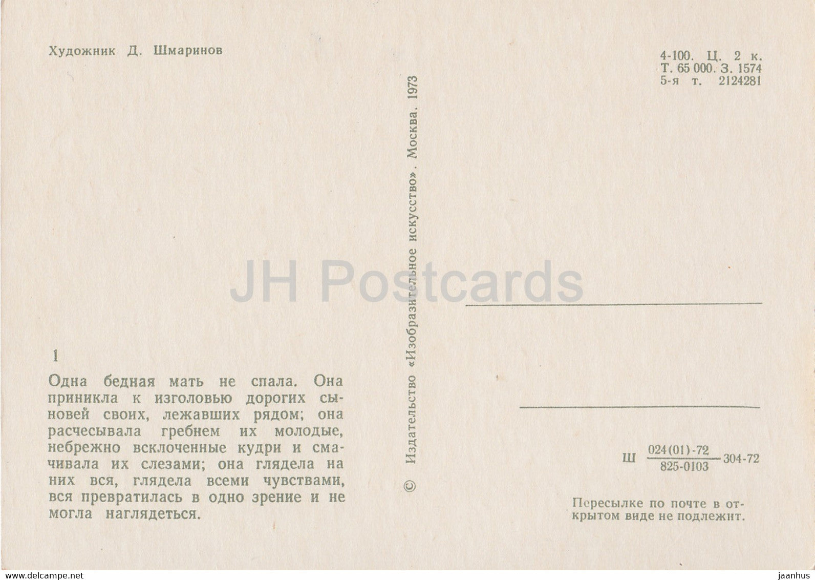 Taras Bulba by N. Gogol - Mother and Sons - illustration by Shmarinov - 1973 - Russia USSR - unused