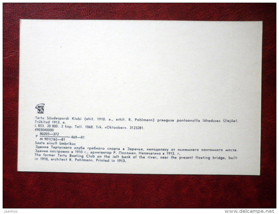 Tartu - Dorpat - Boating Club - old postcard REPRODUCTION!!! - 1981 - Estonia USSR - unused