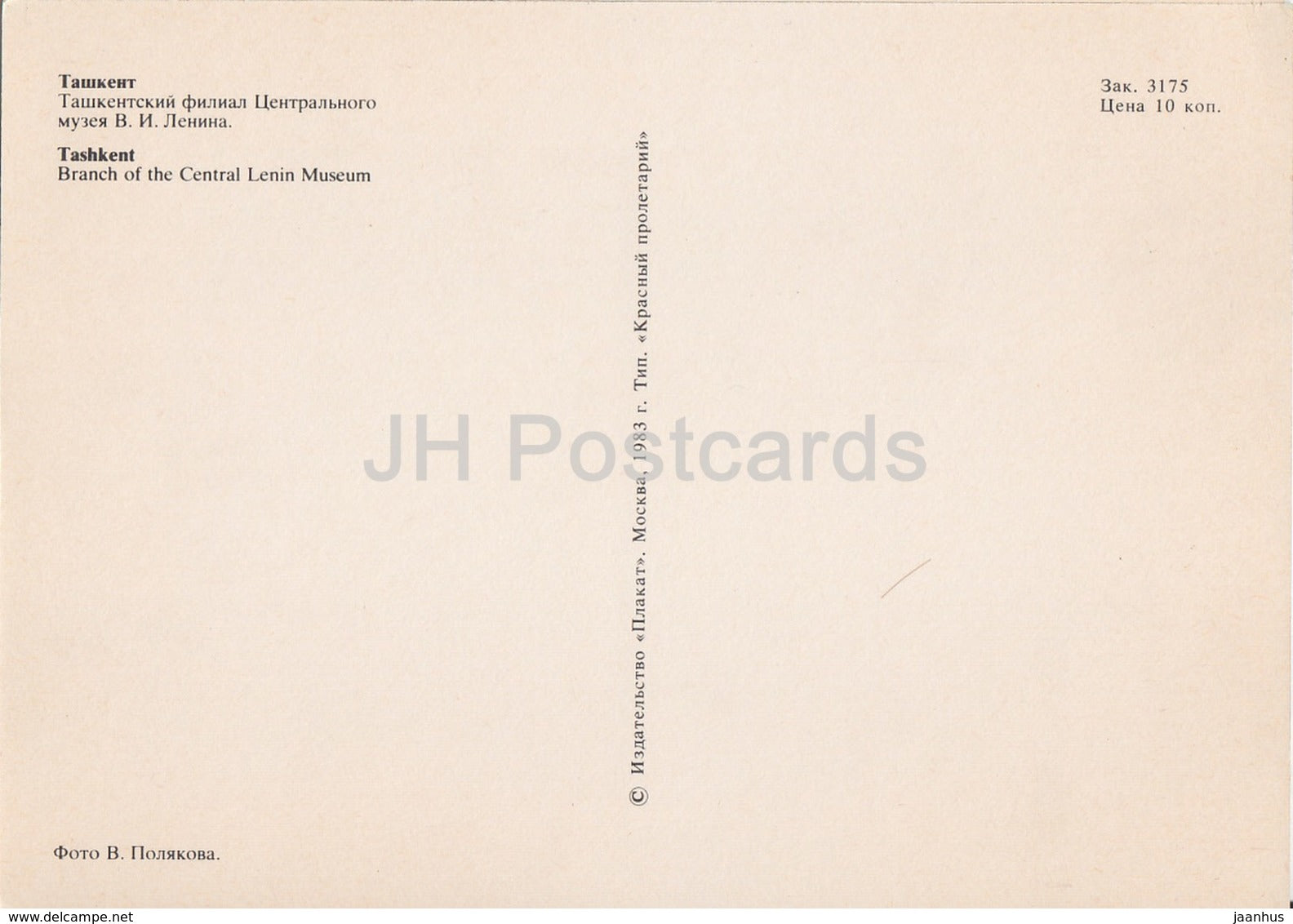 Tashkent - Branch of the Central Lenin Museum - 1983 - Uzbekistan USSR - unused