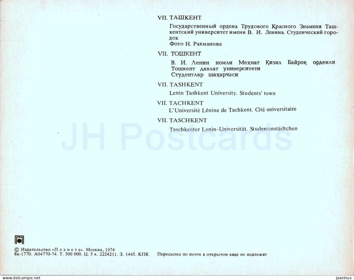 Tashkent - Lenin Tashkent University - Student's Town - 1974 - Uzbekistan USSR - unused