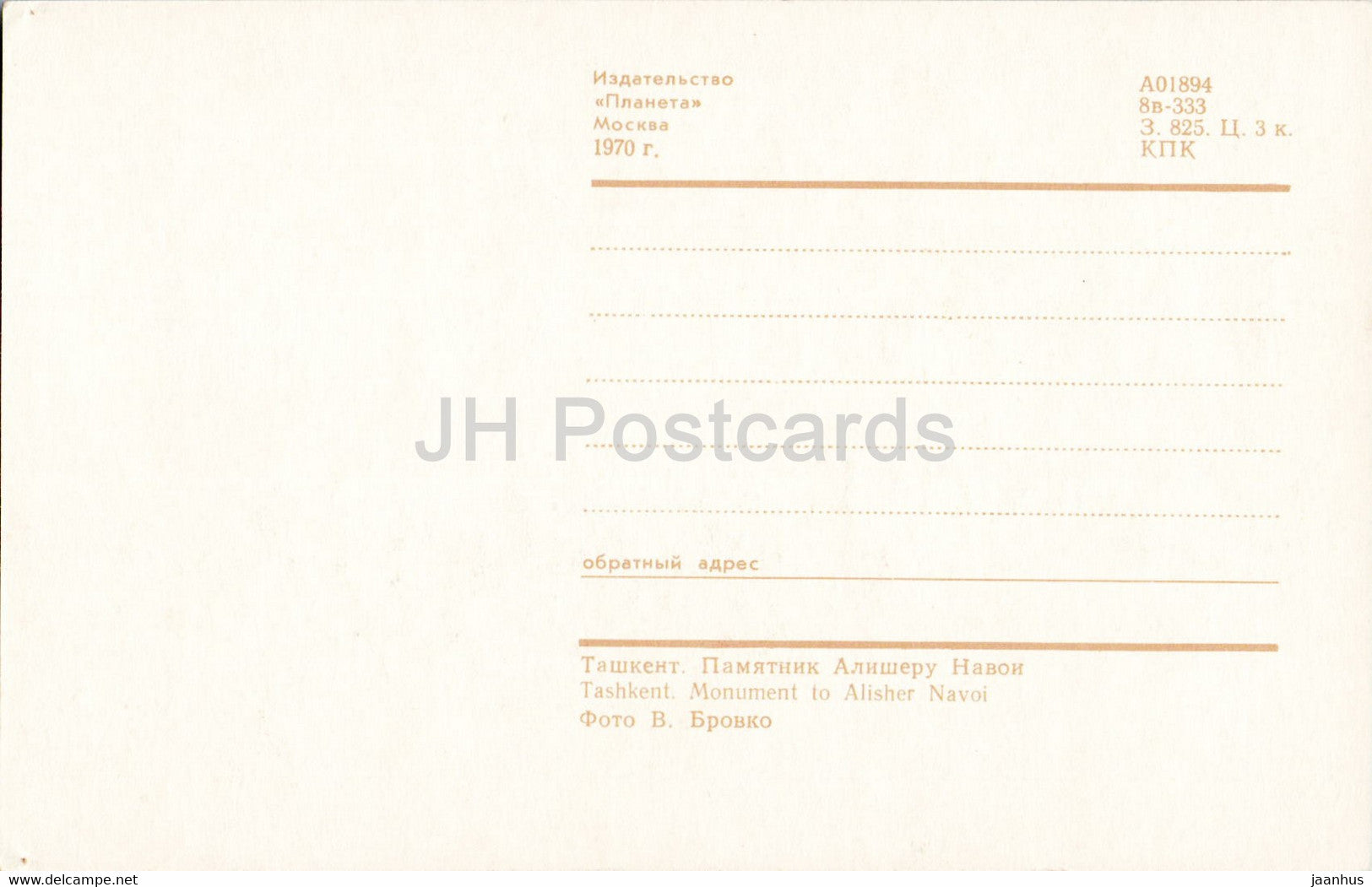 Tashkent - monument to Uzbek poet Alisher Navoi - 1970 - Uzbekistan USSR - unused