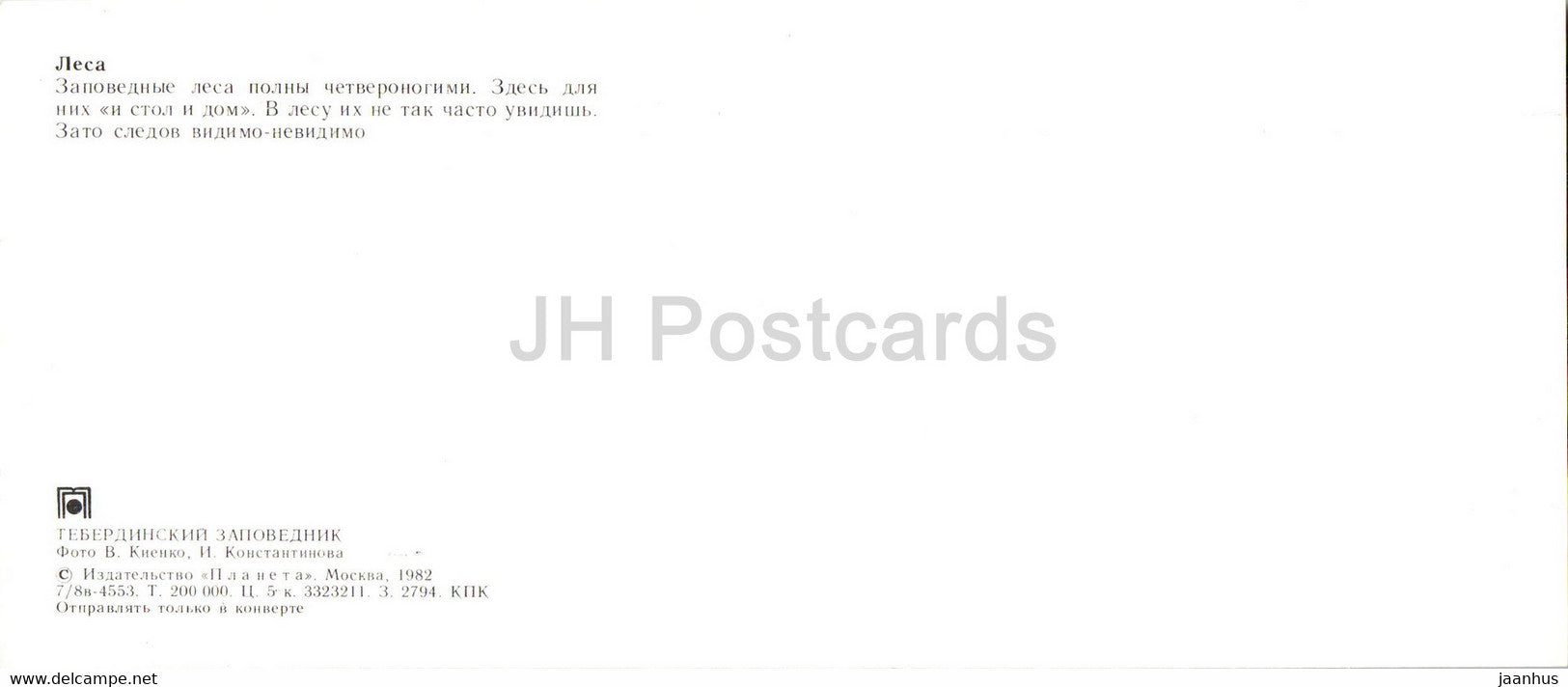 Teberda Nature Reserve - Forests - animals - hare - wild boar - deer - 1982 - Russia USSR - unused