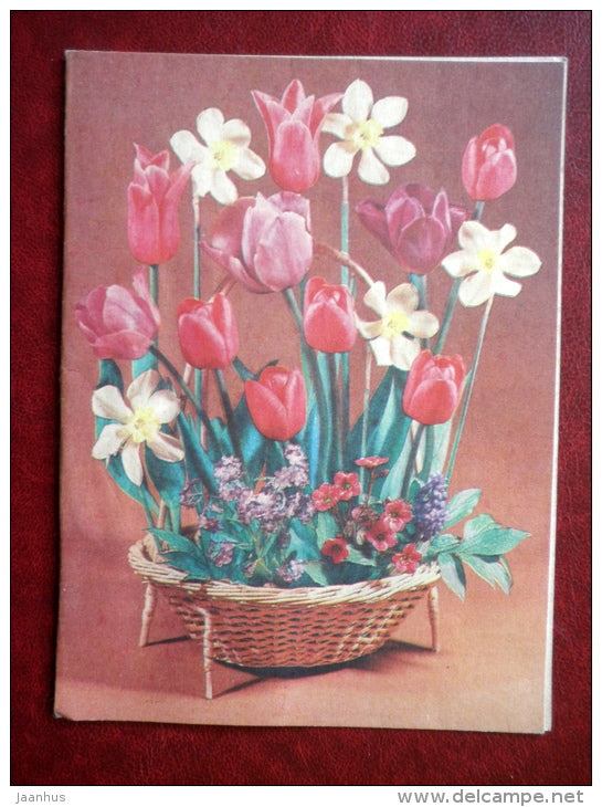 telegram - flowers composition - tulips - narcissus - flowers - 1986 - Russia USSR - used