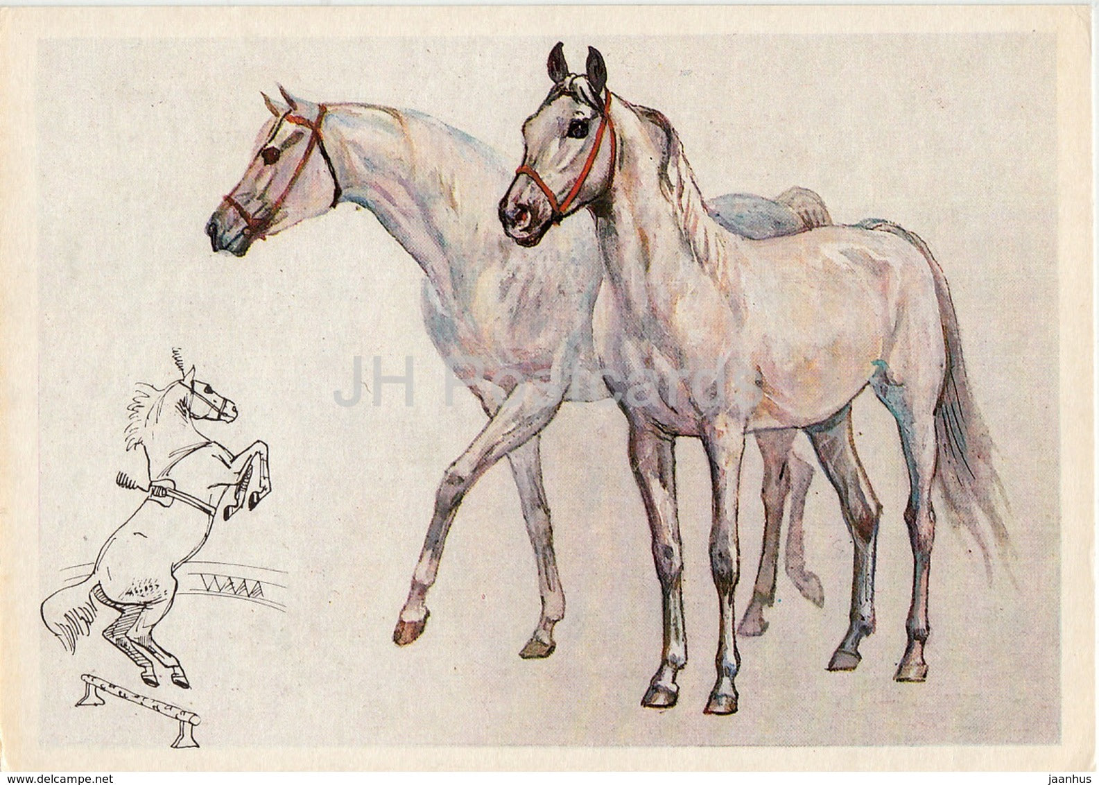 Tersk horse - illustration by A. Glukharev - horses - animals - 1988 - Russia USSR - unused