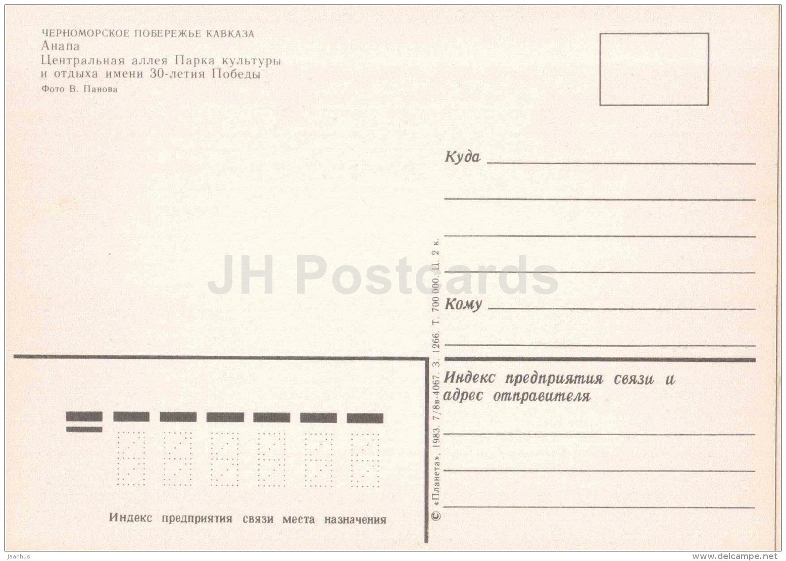 The 30th anniversary of victory central alley of the park of culture and rest - Anapa - 1983 - Russia USSR - unused
