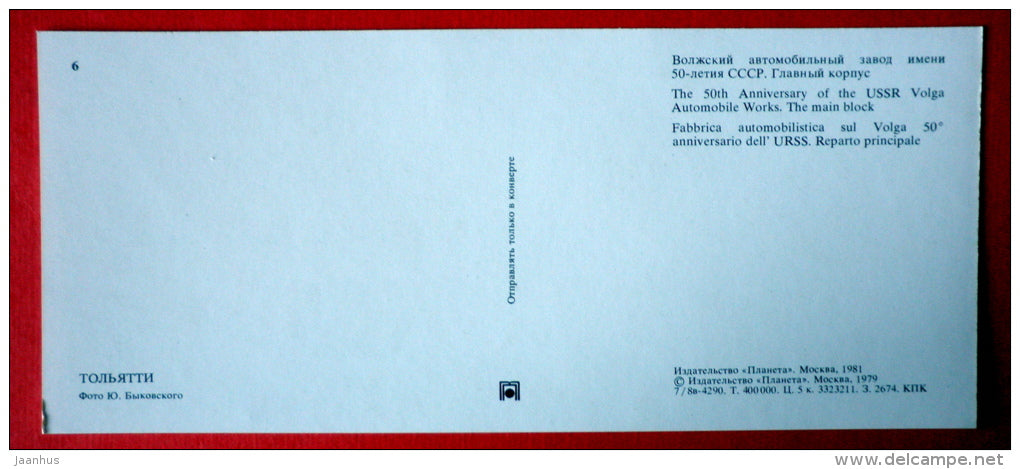 The 50th Anniversary of the USSR Volga Automobile Works - car Niva - Tolyatti - Togliatti - 1981 - USSR Russia - unused