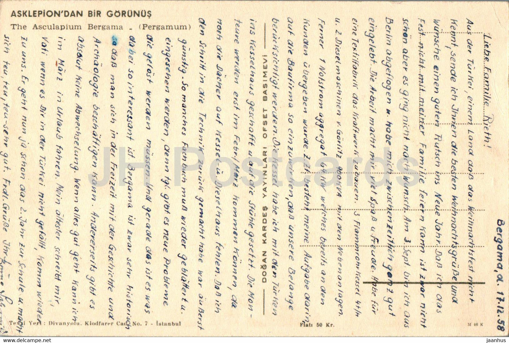 The Asculapium - Bergama - Pergamum - ancient world - old postcard - 1958 - Turkey - used