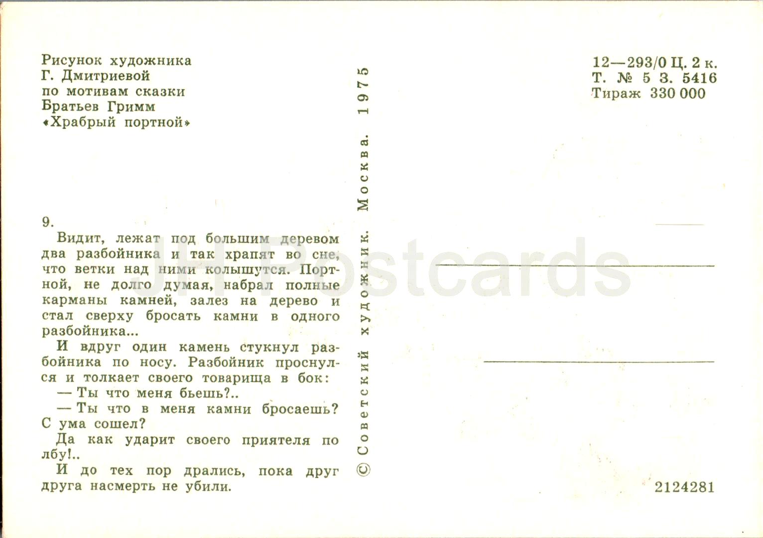 The Brave Little Tailor - Fairy Tale by Brothers Grimm - robbers - illustration - 1975 - Russia USSR - unused