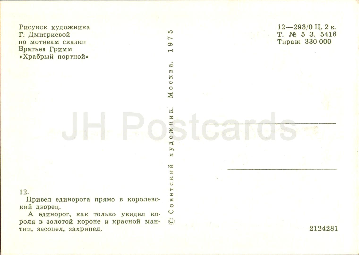 The Brave Little Tailor - Fairy Tale by Brothers Grimm - Unicorn - court - illustration - 1975 - Russia USSR - unused