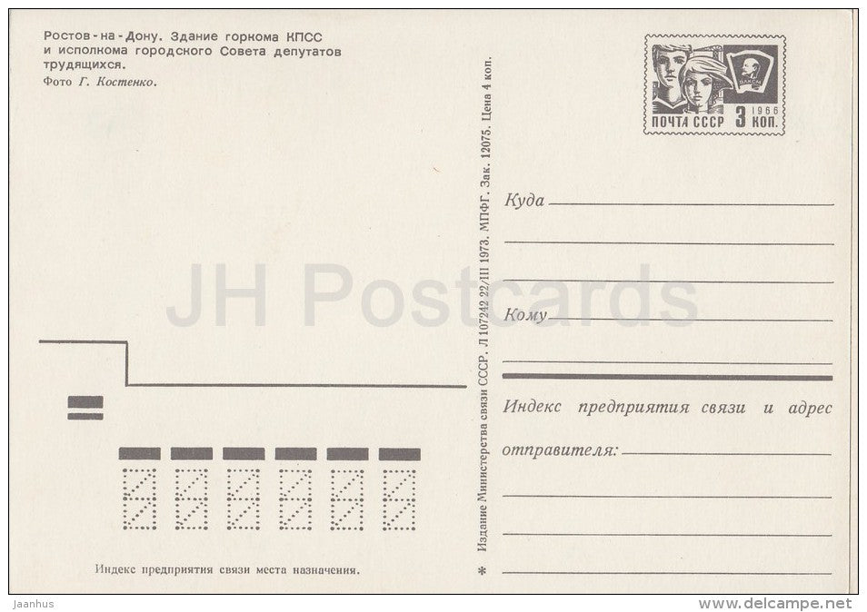The building of Party Committee - Rostov-on-Don - postal stationery - 1973 - Russia USSR - unused