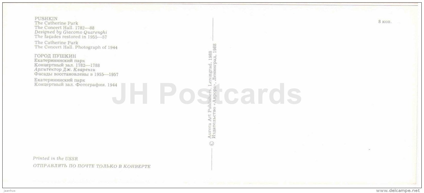 The Concert Hall - Catherine Park - Pushkin , Risen from Ashes - 1988 - Russia USSR - unused