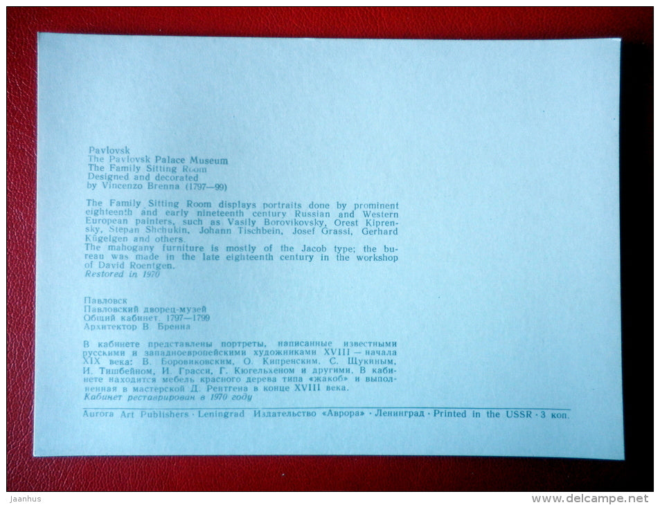 The Family Sitting Room - Interior Decoration - Palace Museum in Pavlovsk - 1977 - Russia USSR - unused