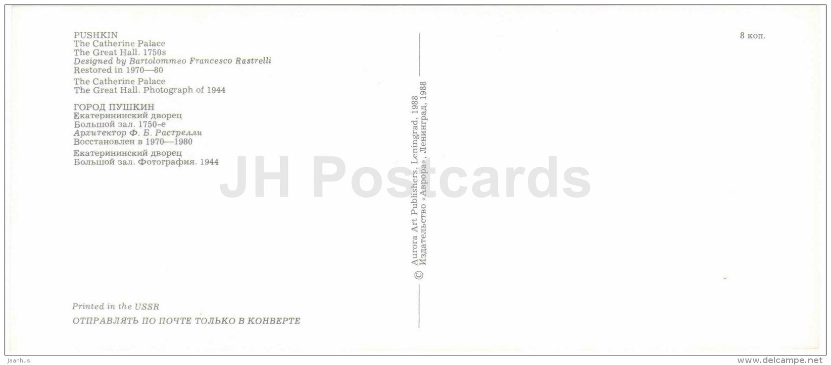 The Great Hall - Catherine Palace - Pushkin , Risen from Ashes - 1988 - Russia USSR - unused
