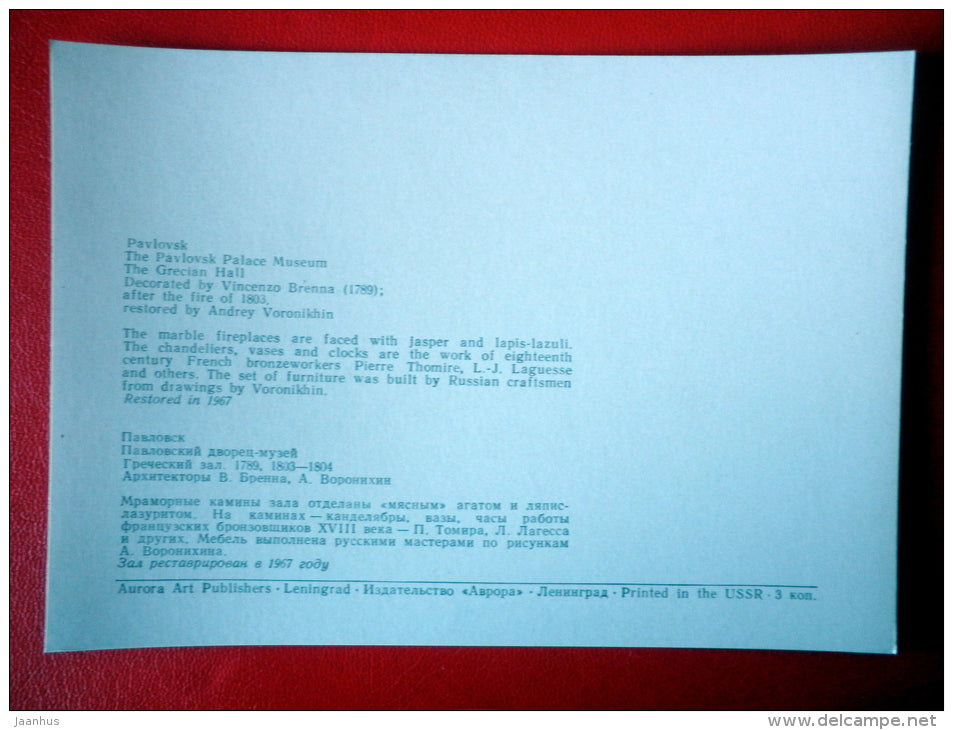 The Grecian Hall , 1789 - Interior Decoration - Palace Museum in Pavlovsk - 1977 - Russia USSR - unused