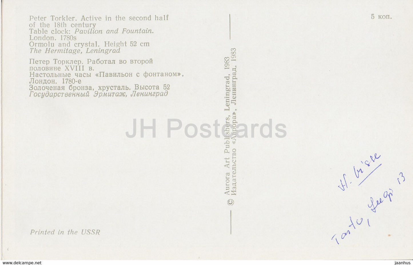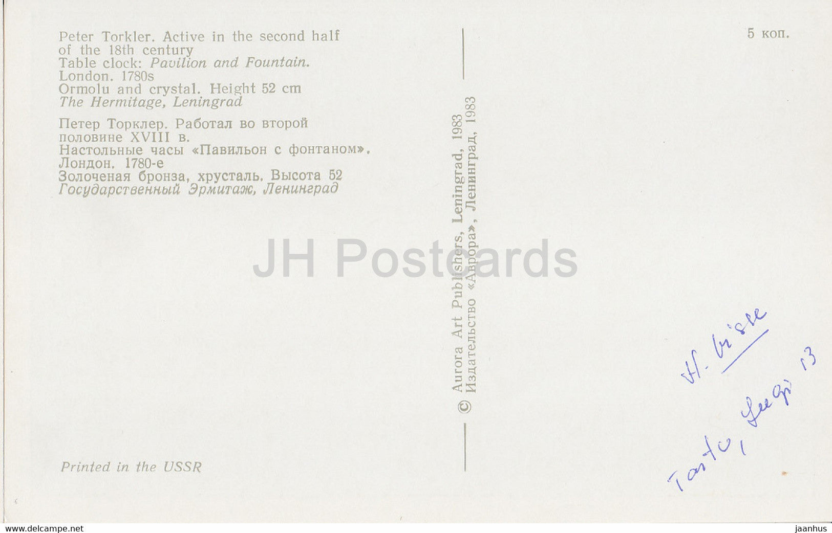 The Hermitage, Leningrad , English Applied Art - Table clock. London 1780s - Russia - USSR - 1983 - used