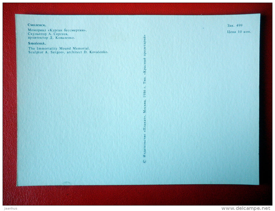 The Immortality Mound Memorial - Smolensk - 1986 - Russia USSR - unused
