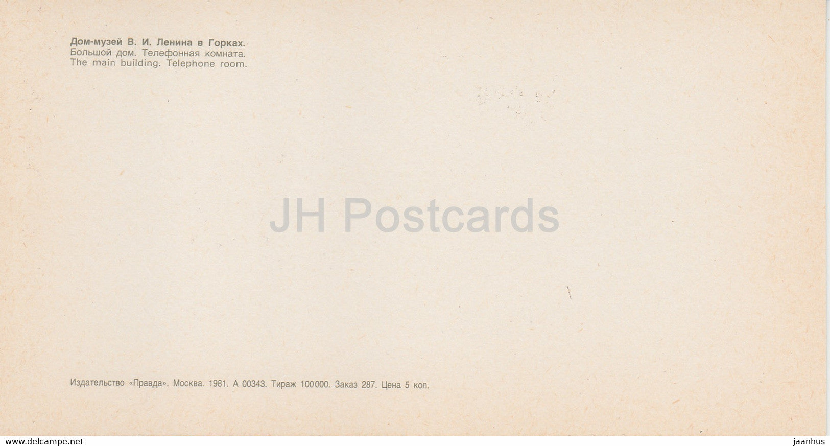 The Main Building - Telephone room - Lenin's House Museum - Gorki Leninskiye - 1981 - Russia USSR - unused