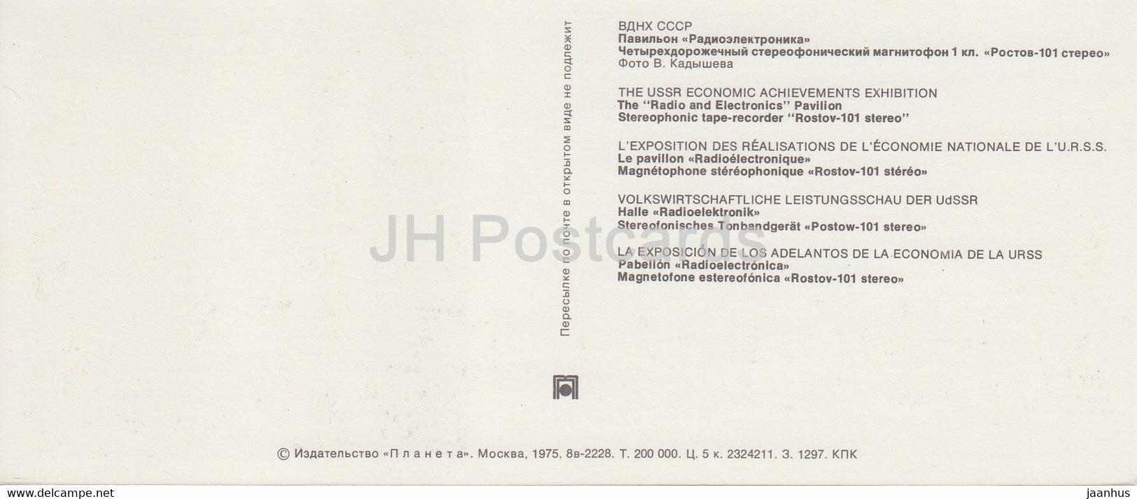 The Radio and Electronics pavilion - tape recorder - All Soviet Exhibition Center - VDNKh - 1975 - Russia USSR - unused