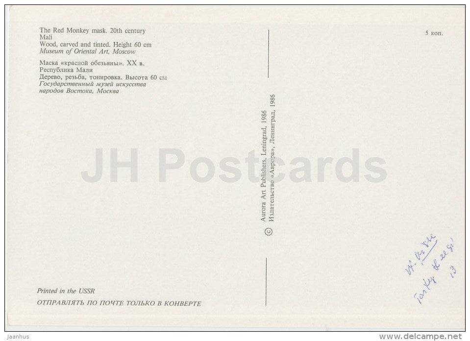 The Red Monkey Mask , Mali - Oriental Art - 1986 - Russia USSR - unused