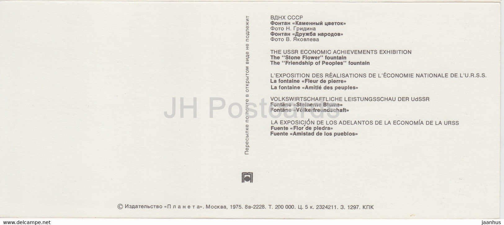 The Stone Flower and Friendship of Peoples Fountain - All Soviet Exhibition Center - VDNKh - 1975 - Russia USSR - unused