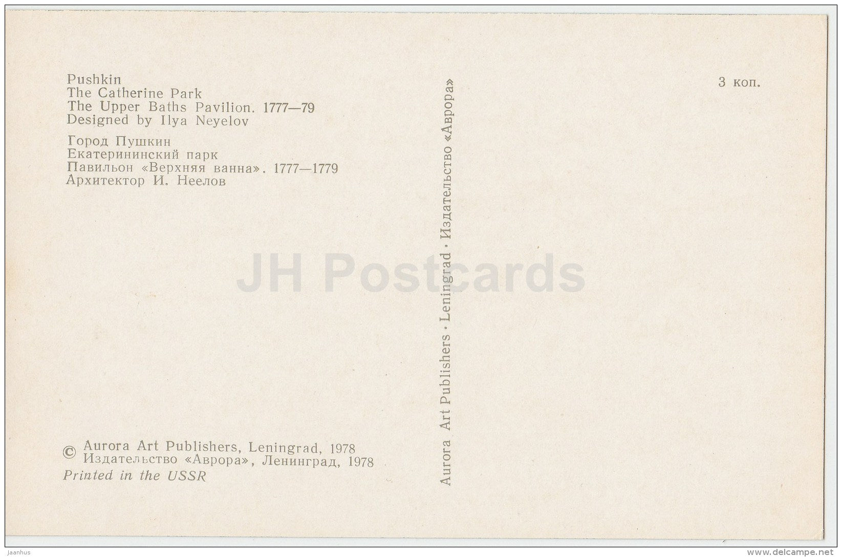 The Upper Baths Pavilion - The Catherine Park - Pushkin - 1978 - Russia USSR - unused