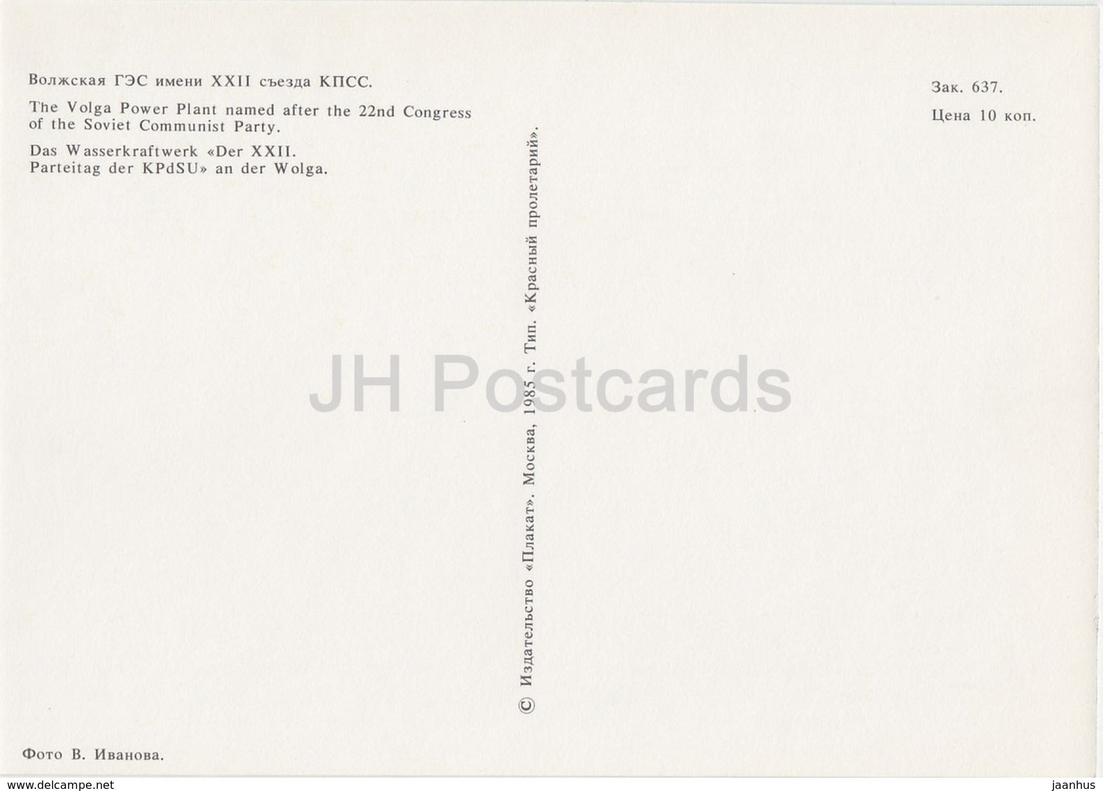 The Volga Power Plant - Rechflot - 1985 - Russia USSR - unused