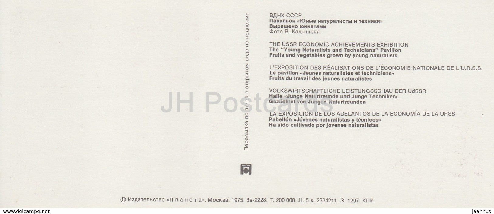 The Young Naturalists and Technicians pavilion - fruits and vegetables - VDNKh - 1975 - Russia USSR - unused