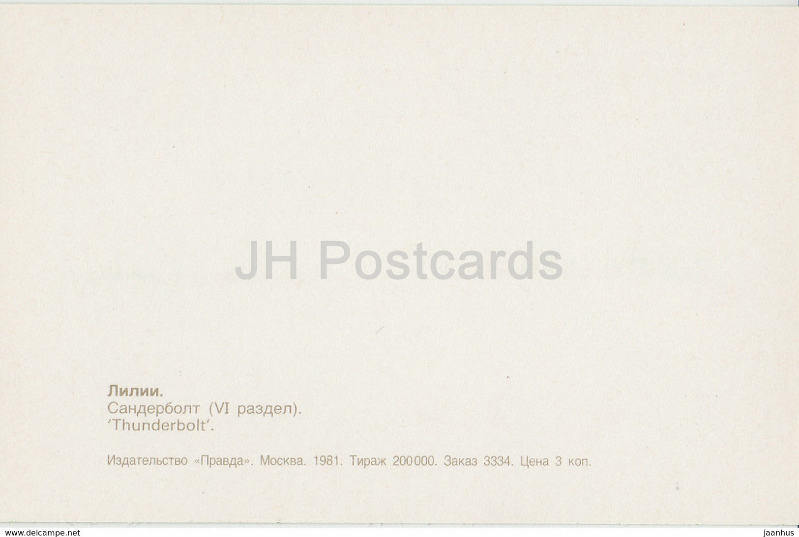 Thunderbolt - lily - flowers - 1981 - Russia USSR - unused