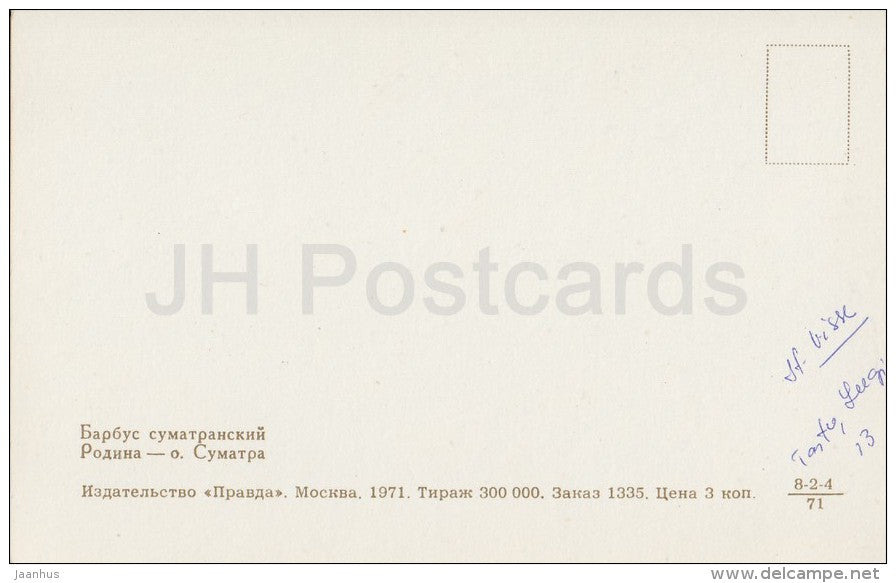Tiger barb , Puntius tetrazona - Aquarium Fish - Russia USSR - 1971 - unused