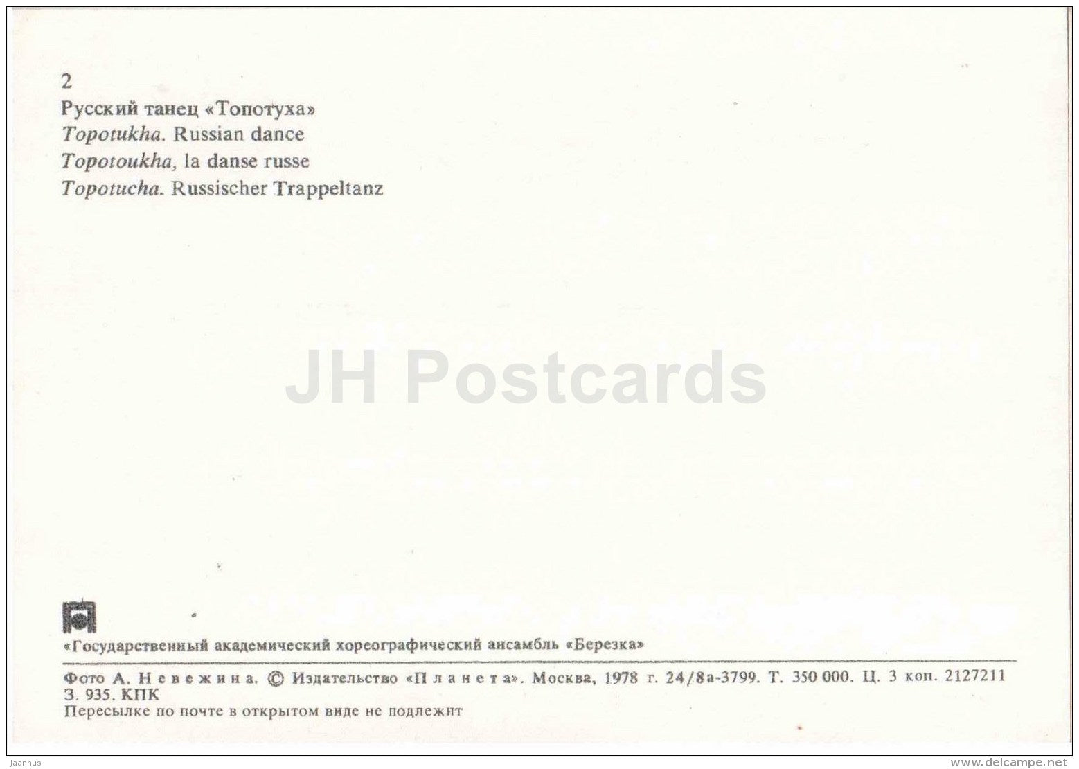 Topotukha - russian dance - State Academic Choreographic Ensemble Berezka - Russia USSR - 1978 - unused