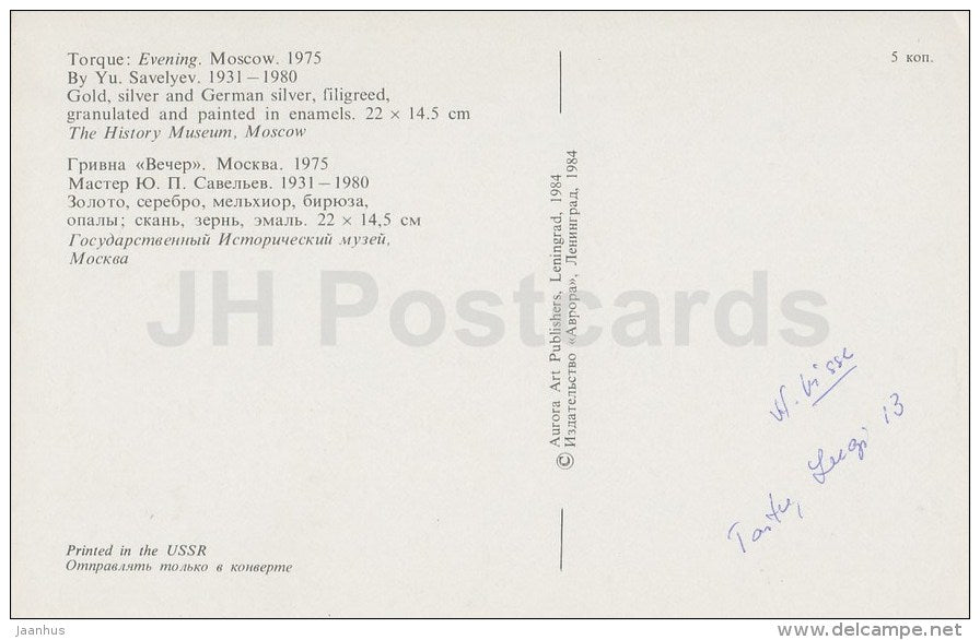 Torque: Evening - Russian and Soviet Jewellery - 1984 - Russia USSR - unused