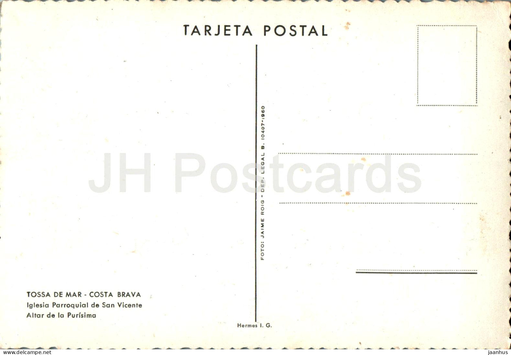 Tossa de Mar - Costa Brava - Iglesia Parroquial de San Vicente - Altar - church - old postcard - Spain - unused