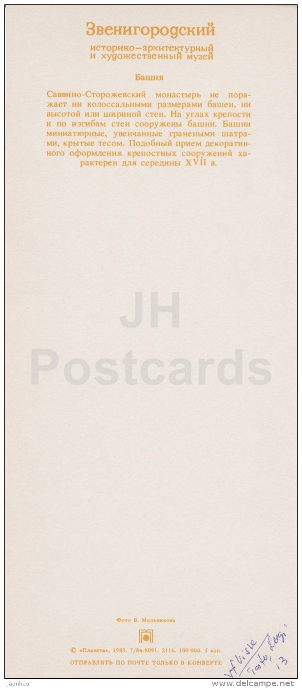 Tower - Zvenigorod Museum - 1989 - Russia USSR - unused
