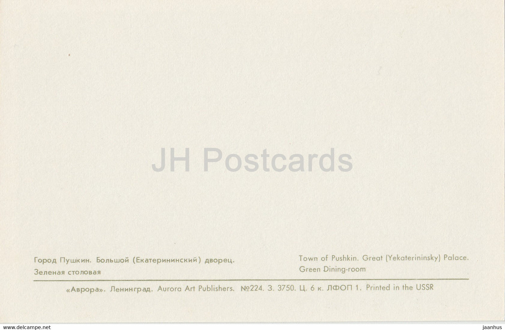 Town of Pushkin - Great (Yekaterinsky) Palace - Green Dining Room - 1971 - Russia USSR - unused