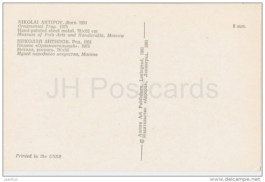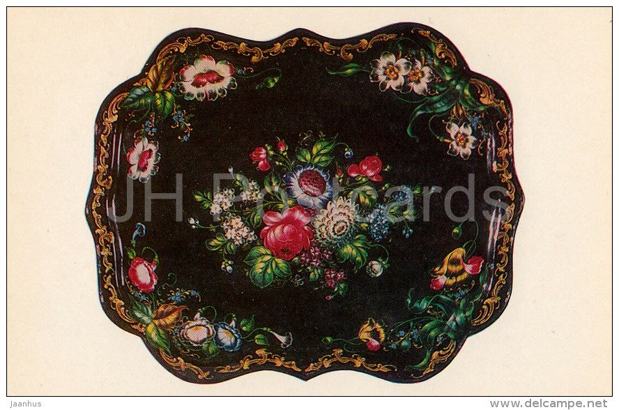 Tray by N. Antipov - Ornamental Tray - flowers - Russian Hand-Painted Trays - 1981 - Russia USSR - unused