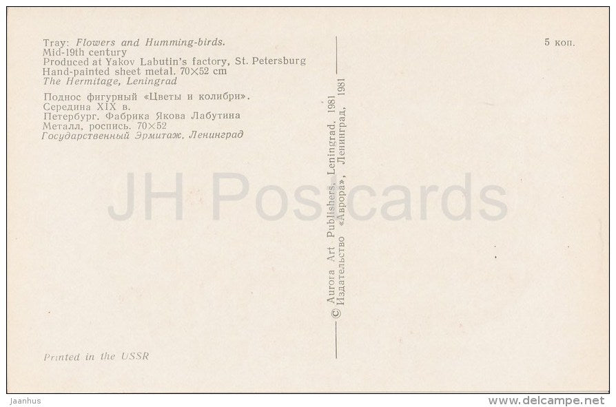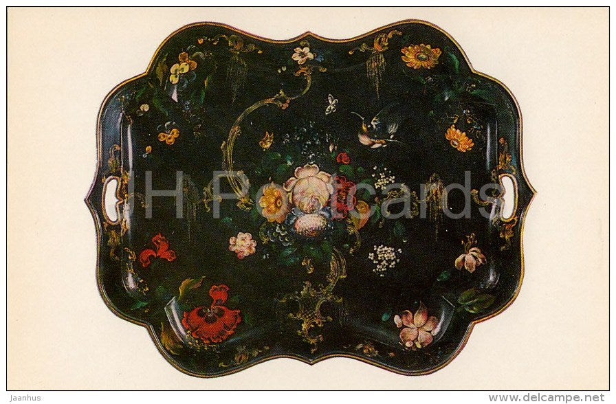 Tray - Flowers and Humming-Birds - Russian Hand-Painted Trays - 1981 - Russia USSR - unused