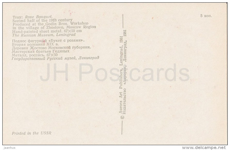 Tray - Rose Bouquet - flowers - Russian Hand-Painted Trays - 1981 - Russia USSR - unused