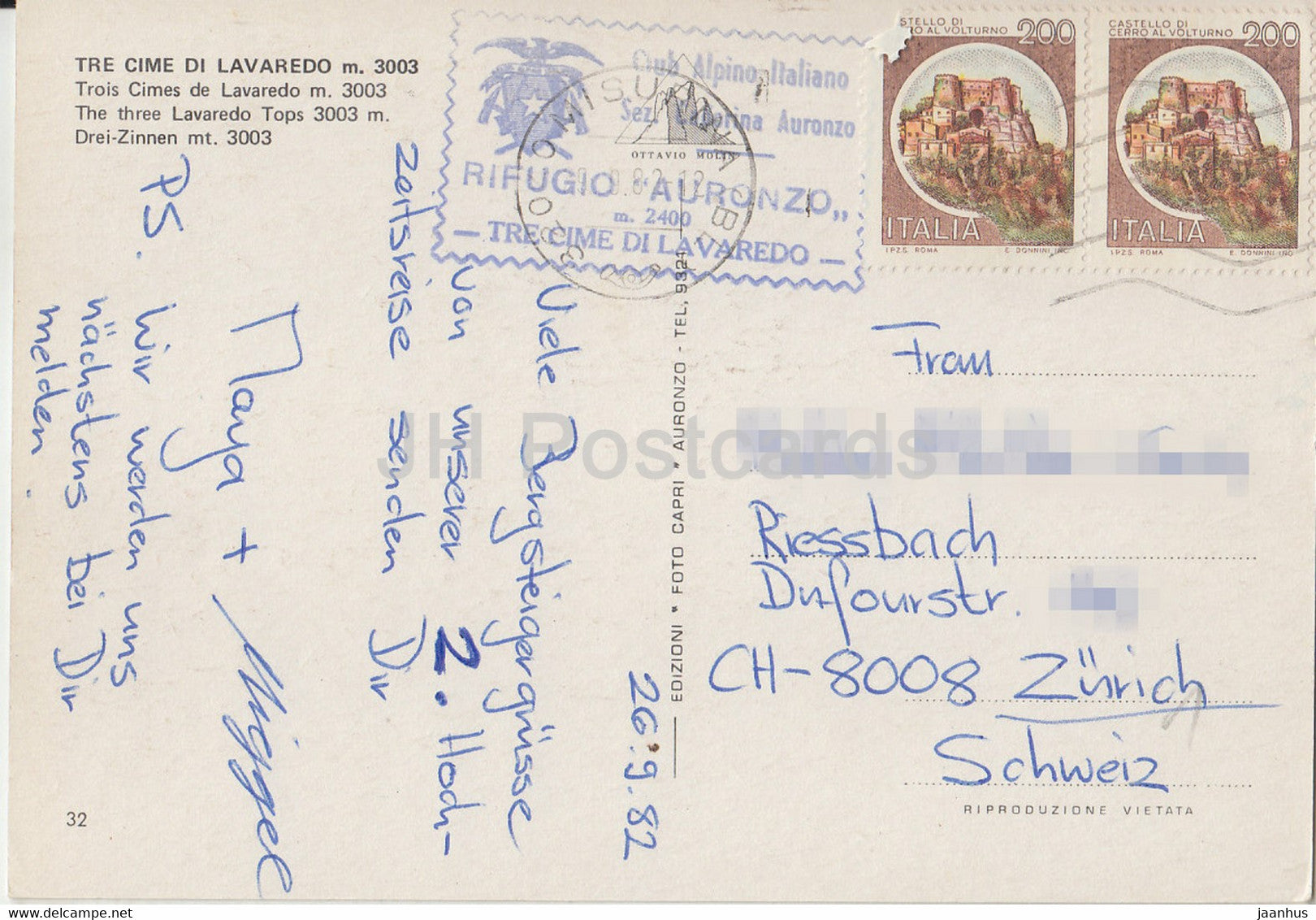 Tre Cime de Lavaredo - Three Lavaredo Tops 3003 m - 1982 - Italy - Italia - used