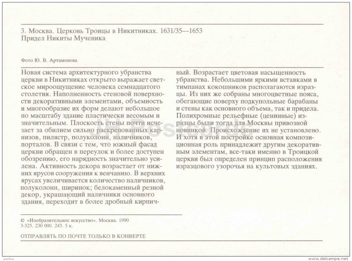 Trinity Church Nikitniki - Architecture and tile Decors - Moscow - 1990 - Russia USSR - unused