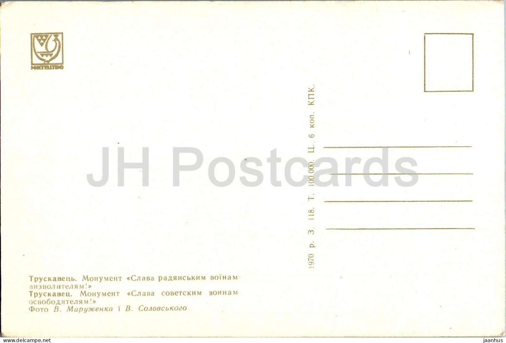Truskavets - Glory to the Soviet soldiers and liberators - monument - 1970 - Ukraine USSR - unused