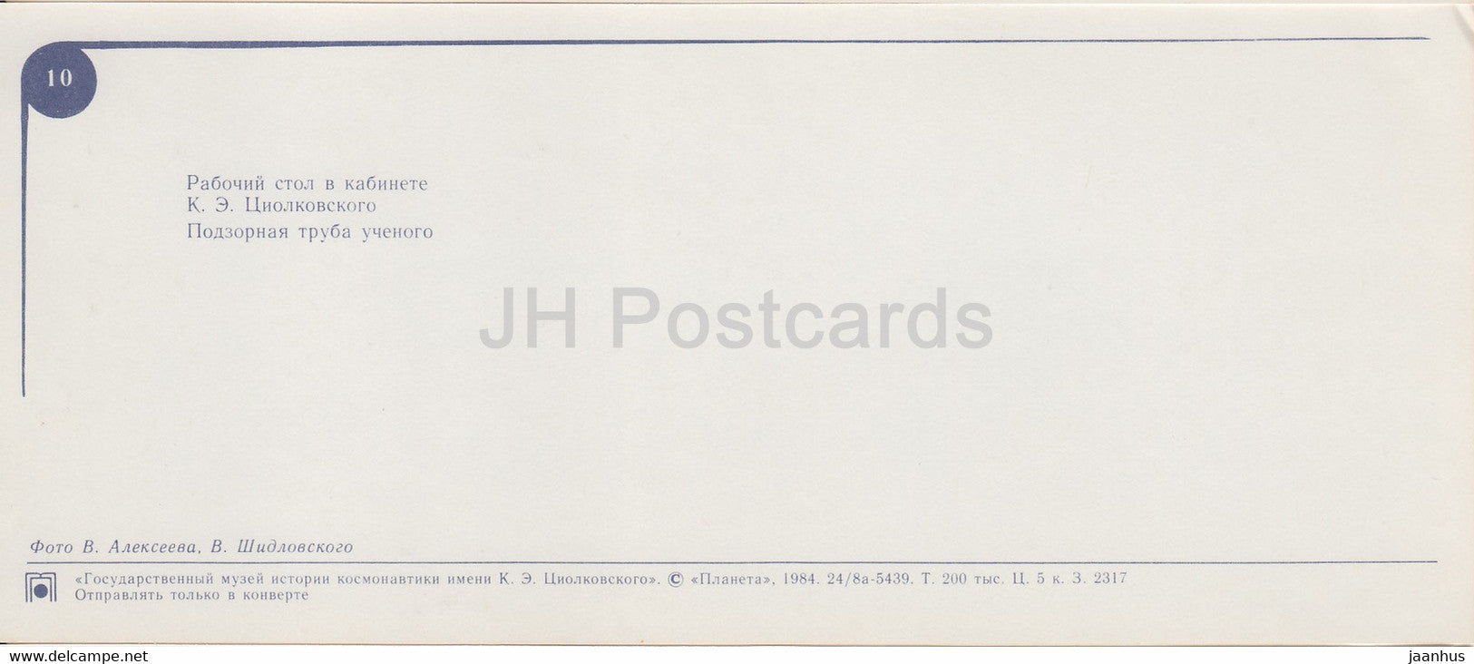 Tsiolkovsky House - Work Table - Spyglass - State Museum of the History of Cosmonautics - 1984 - Russia USSR - unused