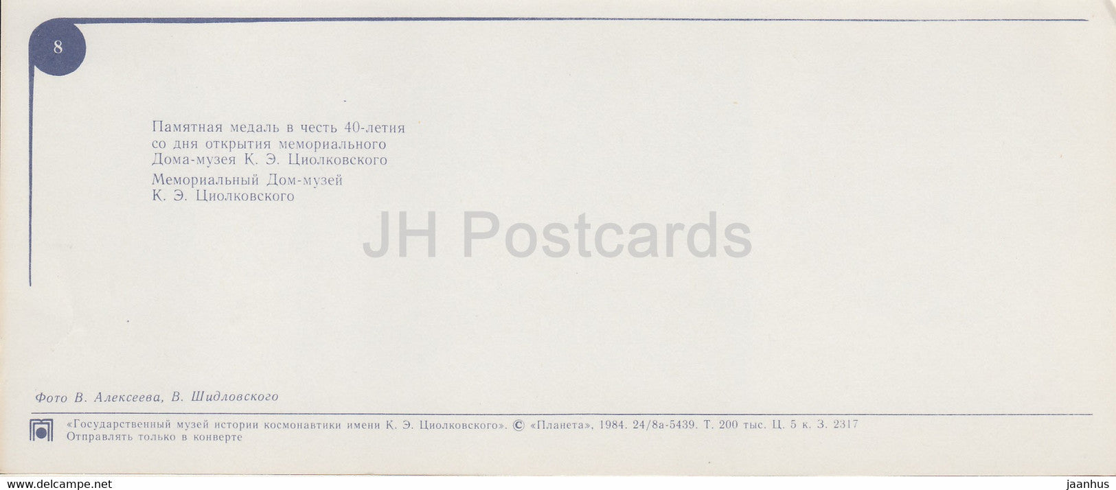 Tsiolkovsky Memorial House Museum - State Museum of the History of Cosmonautics - 1984 - Russia USSR - unused