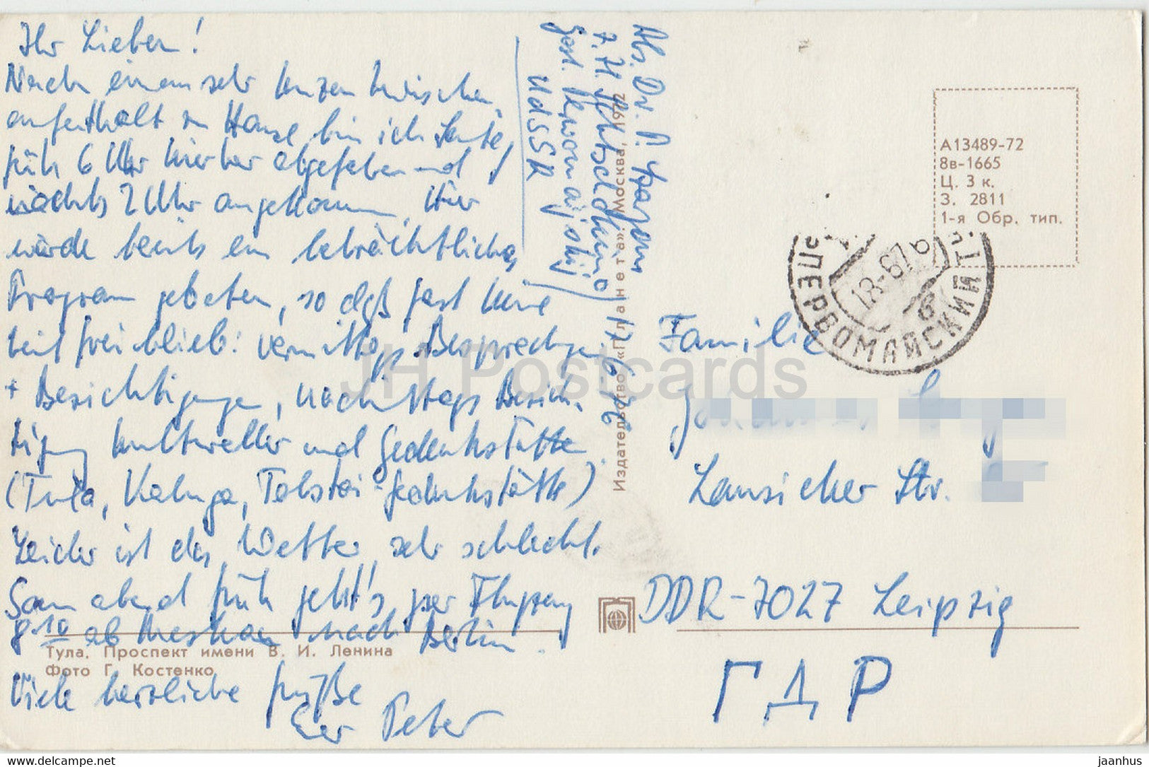 Tula - Lenin prospekt - avenue - car Volga - Zaporozhets - bus - 1972 - Russia USSR - used