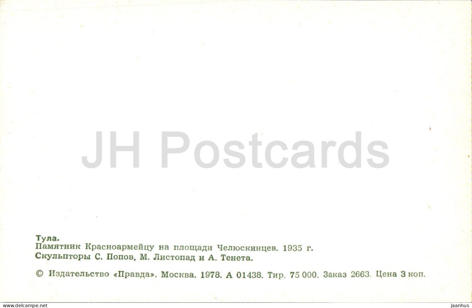 Tula - Monument to the Red Army soldier on Chelyuskintsev Square - bus - 1978 - Russia USSR - unused