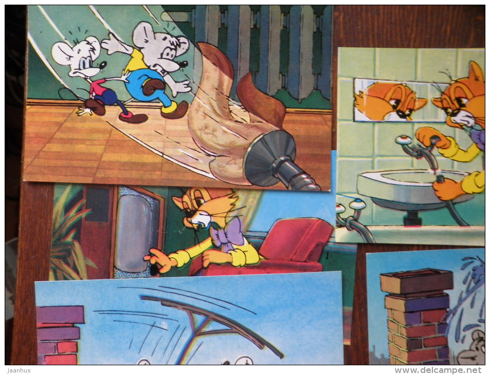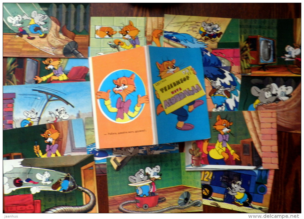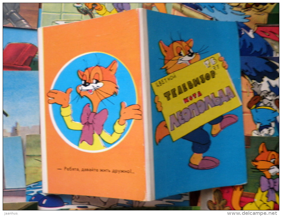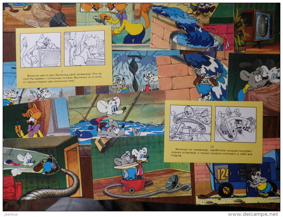TV of cat Leopold - Set of 15 Cartoon cards - 1983 - Russia USSR - unused