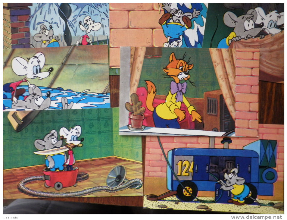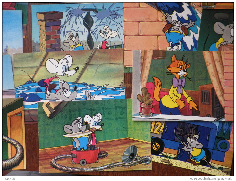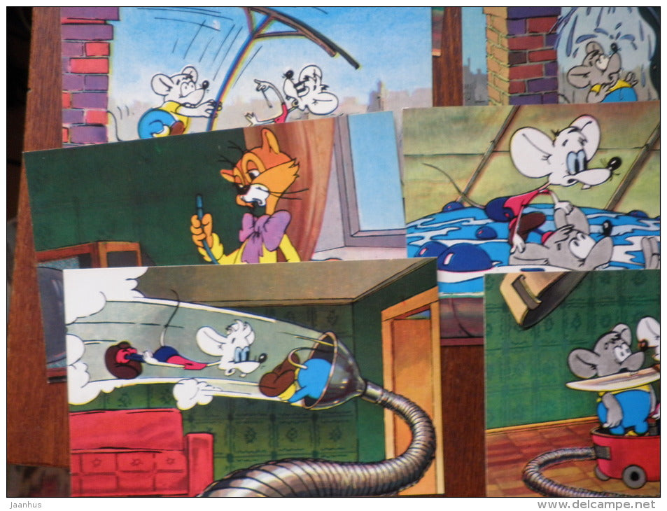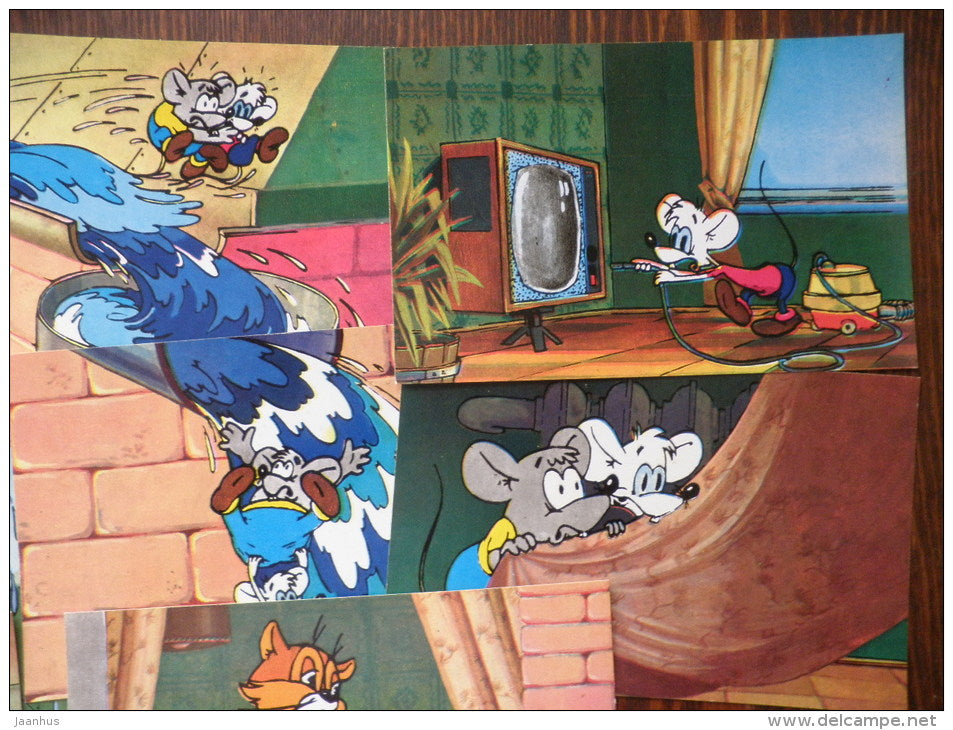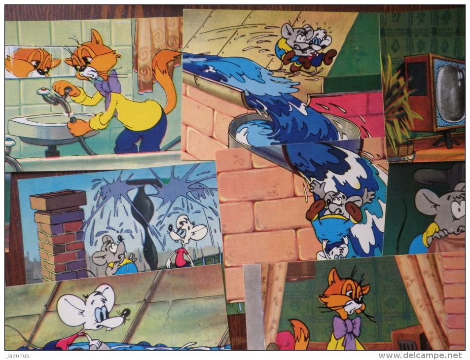 TV of cat Leopold - Set of 15 Cartoon cards - 1983 - Russia USSR - unused