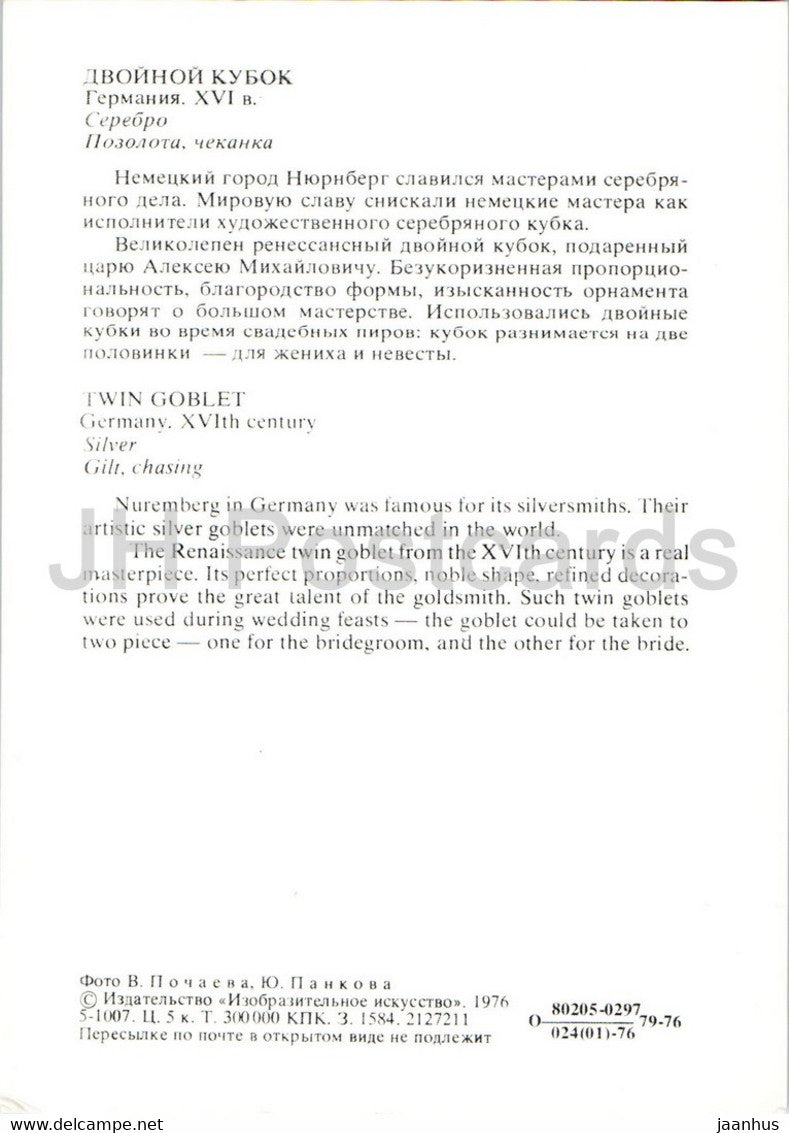 Twin Goblet - Germany - silver - Moscow Kremlin Armoury - 1976 - Russia USSR - unused