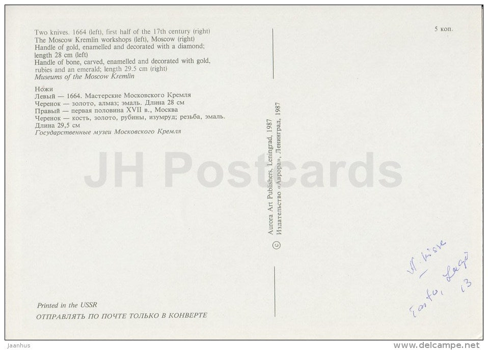 Two Knives , Moscow Kremlin Workshops - 17th Century Russian Ceremonial Tableware - 1987 - Russia USSR - unused