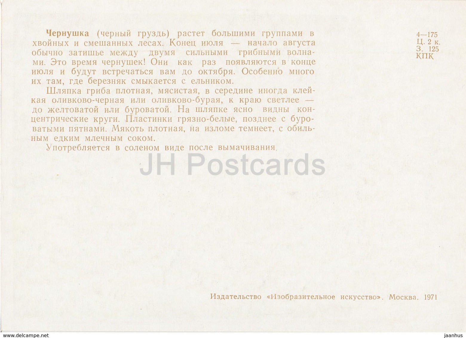 Ugly Milk-cap - Lactarius turpis - mushrooms - illustration - 1971 - Russia USSR - unused