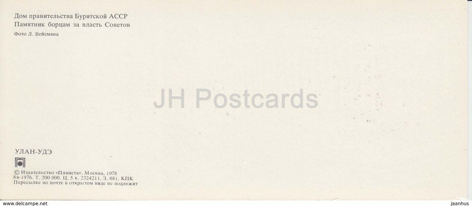 Ulan-Ude - Government House - monument to the fighters for Soviet power - bus - Buryatia - 1978 - Russia USSR - unused